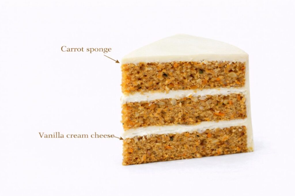 wheat flour, eggs, sugar, carrots, unsalted butter, vegetable oil, cream cheese, cream, powdered sugar, cinnamon, nutmeg, ginger, cloves, vanilla paste, orange zest, baking powder, baking soda, salt.
